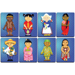 Composto por 2 puzzles grandes de 6 (menino) e 7 peças (menina) em madeira.