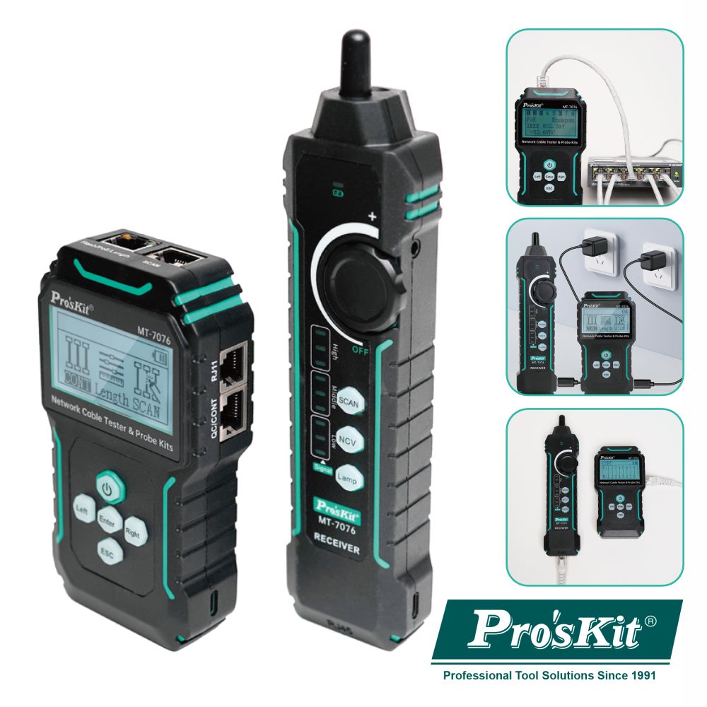 Testador de cabos c/ gerador Tons. Tensão funcionamento: 2x 9Vdc (inc. ). Alcance transmissão até 3Km, teste nível DC. Transmissão sinal c/ múltiplos impulsos de freq. . Pinças p/ RJ11, cabo RJ45 e auriculares. Transmissor: 130x48x35mm, bolsa transporte